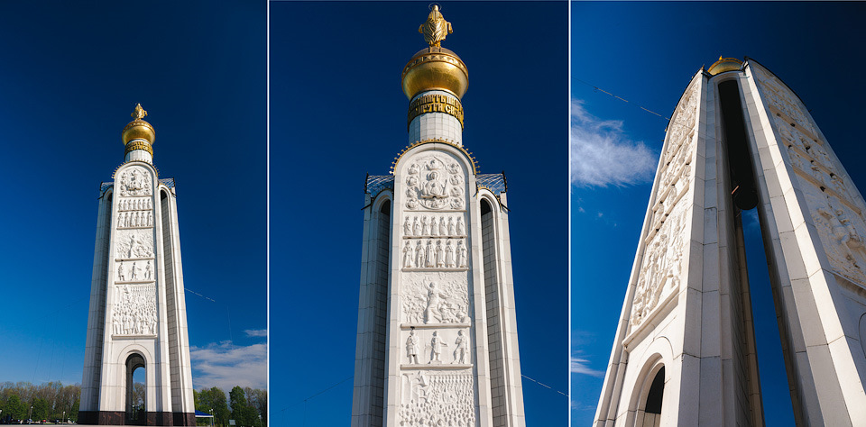 Монумент невероятной красоты и величия. Ну ооочень зрелищно особенно на фоне ясного синего неба! Над сферой возвышается семиметровая скульптура Покрова Пресвятой Богородицы — заступницы и защитницы России. Над пилонами в круглой части из белого мрамора золотом сияют слова из Священного Писания: «Больше сея любве никтоже имать, да кто душу свою положит за други своя». У основания мраморного барабана расположен золоченный лавровый венок — символ немеркнущей славы всех павших за свое Отечество на этом поле.