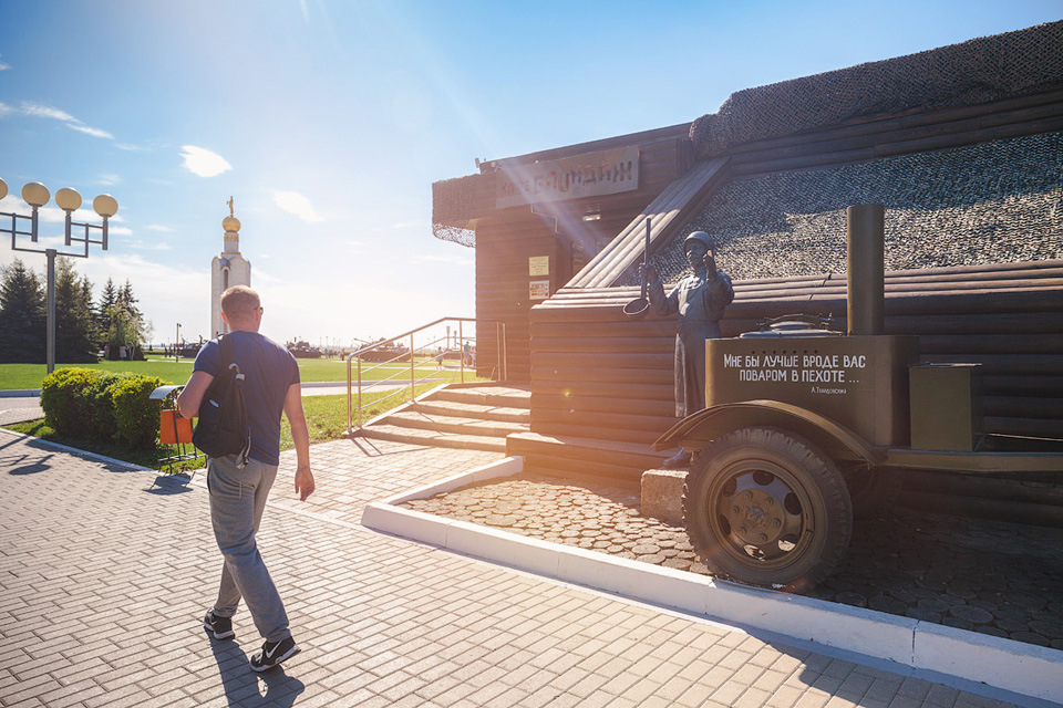 Музей работает для посетителей с 10.00 до 17.00. Выходной — Понедельник. Ну а мы ознакомившись с интересными фактами и кусочками настоящей истории, выходим на улицу и направляемся в сторону танкодрома. Перед нами еще один очень сильный монумент — скульптурная композиция «Танковый десант». Это символ единения оружия, техники и людей, целеустремленности к победе и солдатской взаимовыручки.