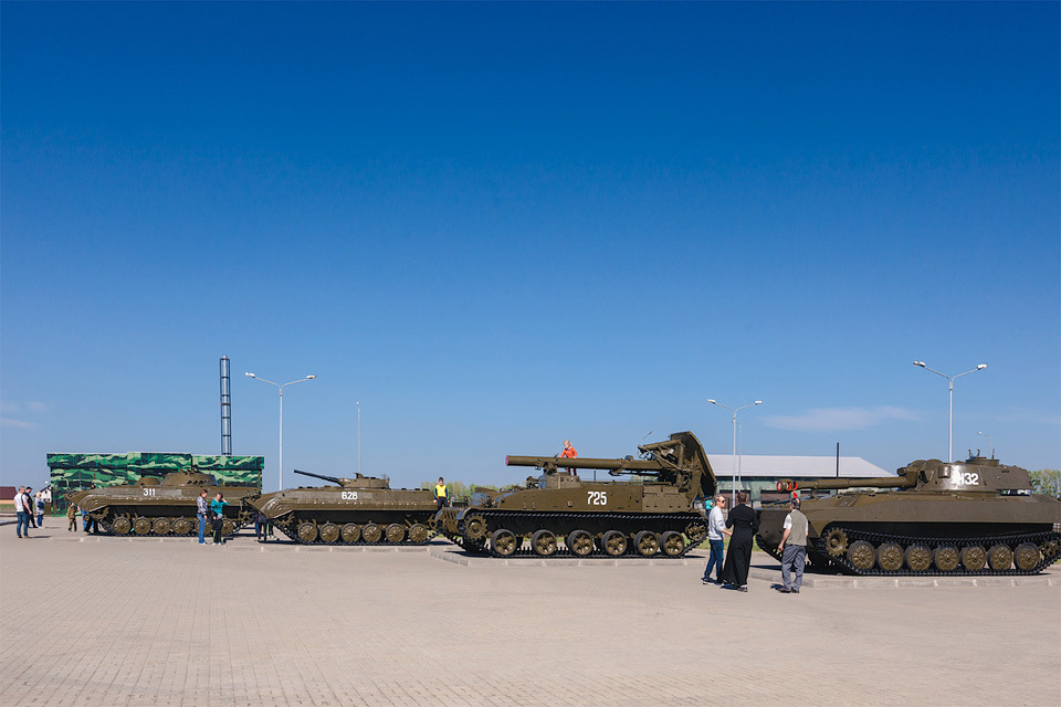 Позади выставочной площадки располагается танковый полигон — танкодром. 16 мая 2015 года состоялось его торжественное открытие. Полигон для демонстрации военных машин расположен на площади 11 га. Представленный проект Танкодрома уникален в масштабах страны. Подобные открытые площадки для демонстрации технических возможностей бронетехники существуют лишь в Англии и Чехии. В наличии действующие единицы бронетехники: БТР-70, БМП-1, БРДМ-2, боевая машина десанта БМД-2 и бронеавтомобиль БА-64. Кроме того, полигон предназначен для показательных выступлений клубов реконструкций и воинских частей. Пока мы смотрели танки на выставочной площадке, по полигону неистово носилась какая-то из бронированных машин с флагом РФ, вздымая клубы пыли.