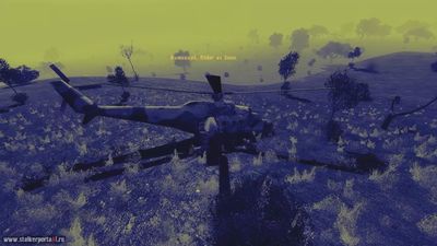 На холме у откоса видим упавший МИ-24, находящийся в пси-зоне. Чтобы добраться до него, придётся обзавестись защитой(костюм Сева, пси-блокада или артефакт "Прелесть"). У вертолёта в ящике берём записку. Идём к разбитой машине, забираем вторую записку. Далее подходим к дому у рембазы, на подходе получаем подзадание на отстрел засевших там бюреров. Уничтожив их, осматриваем плиту, потом на чердаке ищем схрон с очередной запиской. После этого направляемся в указанное место, видим там живого, но сошедшего с ума пилота. Говорим с ним, ждём, пока он прыгнет в телепорт и идём за ним. Очутившись посреди аномали, забираем с трупа последнюю записку и находим личный тайник.