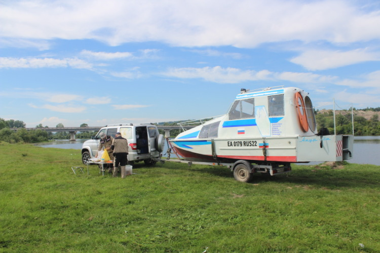 Утром почему-то подумалось: хорошо, что воду не сбрасывали ночью, а то бы висеть нам на этой сосне. 28 июля в 11 часов утра прибыли в Джойскую Сосновку, где нас встречал Булыч на Патриоте. Время хода составило 34 часа, пройдено 416 километров, расход топлива примерно 65 литров. Всеми этими показателями мы остались чрезвычайно довольны. Погрузка катера прошла без проблем, заехали на смотровую площадку СШ ГЭС, в Саяногорске дозаправили катер (60 литров) и стартовали уже в составе — ПИМ, Булыч и я уже до Красноярской ГЭС. Олега на Патриоте отправили по берегу.