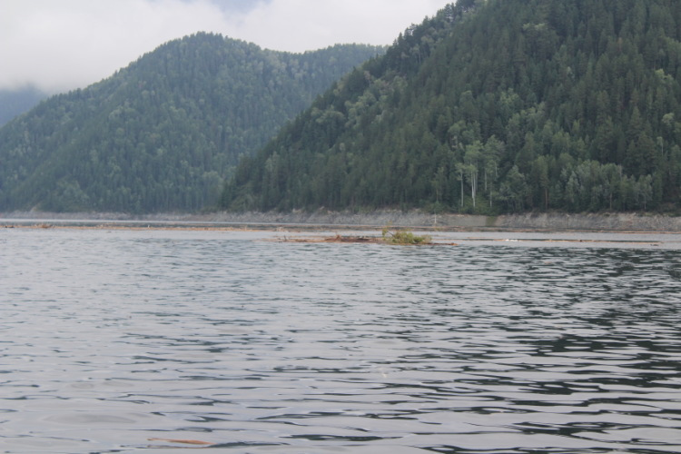 Примерно в 9 часов вечера сгустились сумерки. Идти в ночное время мы не рискнули и остановились на привал у самой кромки водохранилища. Следующие сутки шли по Саяно-Шушенскому водохранилищу. Начиналось оно довольно широким, но очень быстро вошло в узкую лощину.