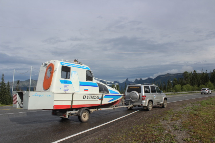 Дорога до Кызыла прошла без приключений. На въезде в Кемеровскую область пришлось убедить блюстителей порядка, что Кузбасс мы проходим исключительно транзитом, поверили на слово. У работников ГИБДД наш автопоезд вызывал неподдельный интерес. Но чаще всего они даже документы не смотрели их интересовал корабль и наш авантюрный маршрут. Через Красноярск мы проезжаем регулярно по Транссибу, а вот отклониться от него южнее как-то не доводилось. В Ачинске заночевали и свернули с трассы в сторону Хакасии и Тывы. Хакасия поразила нас своими тучными полями и высокими горами.
