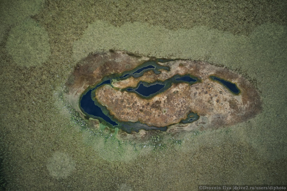 05.Или вот: зеленый дельфин в тайге. Река промыла новое русло, и получился остров. Эти кадры делаю по вечерам и утрам.