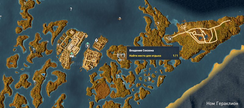 Вам нужен вопросительный знак, расположенный на лесистом островке справа от Гераклиона.