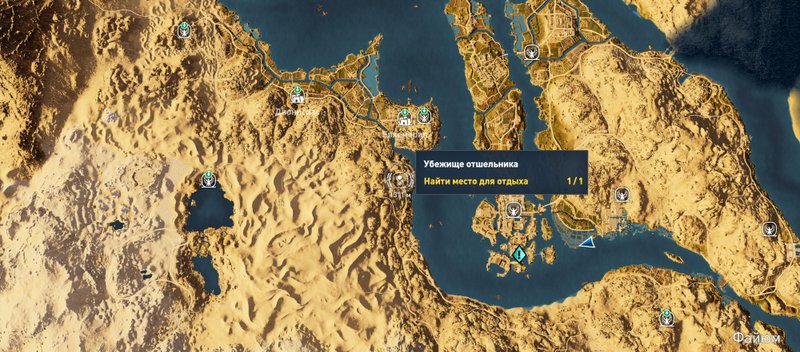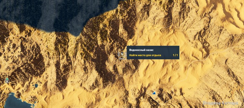 Это убежище скрыто лучше всех остальных, поэтому найти его самостоятельно будет крайне сложно. К тому же неподалеку от оазиса посередине Впадины Каттара вы столкнетесь с 6-ю гиенами как минимум 36-го уровня. Поэтому вам стоит хотя бы завершить сюжетную кампанию, прежде чем идти в эту локацию.
