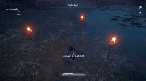 Разобравшись с гиенами (избежать боя с ними не удастся), отыщите 3 факела, установленных в воде. Взаимодействуйте с ними, чтобы получить последнее очко умений.