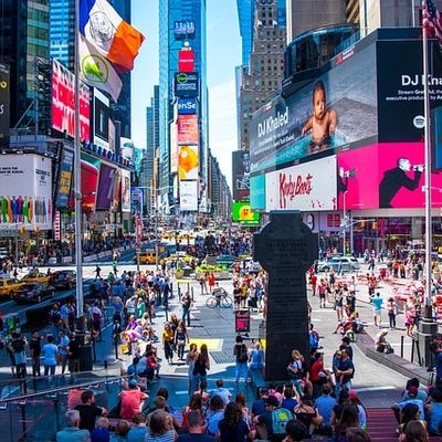- Краткая прогулка по Таймс-сквер в Нью-Йорке.