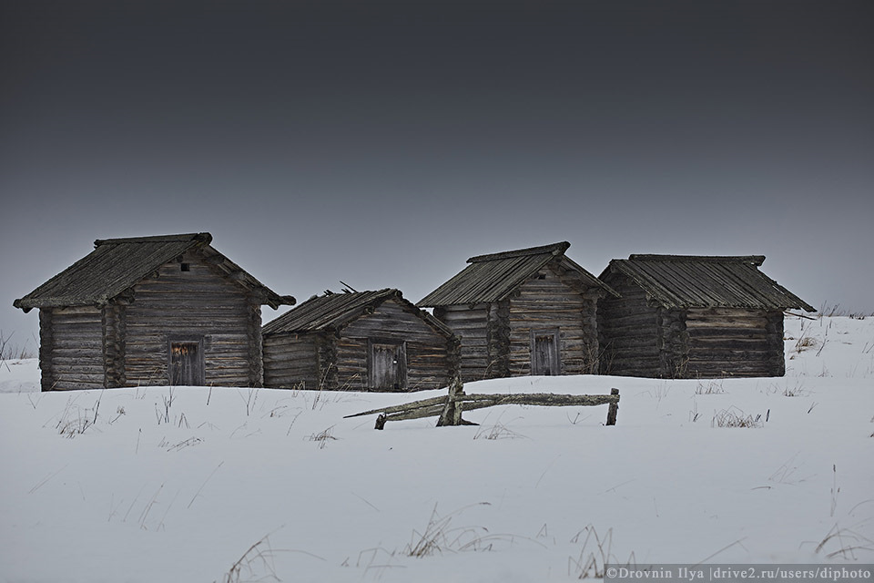 04.Или амбарные городки. В этих небольших избушках хранили зерно и ценные вещи. Теперь вот стоят одиноко. Часть амбаров во времена СССР увезли в музей под Архангельском Малые Корелы. Там же можно найти и другие постройки.