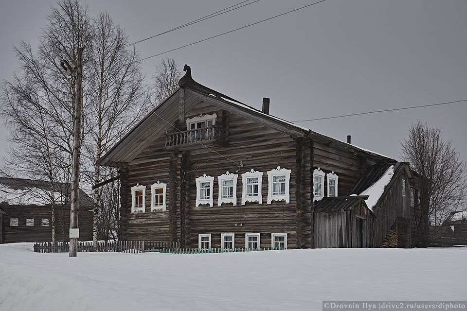 19.Деревни в Лешуконии старинные, тут почти не встретишь новых строительных материалов. Время заборов из профлиста и окон из пластика сюда еще не добралось.