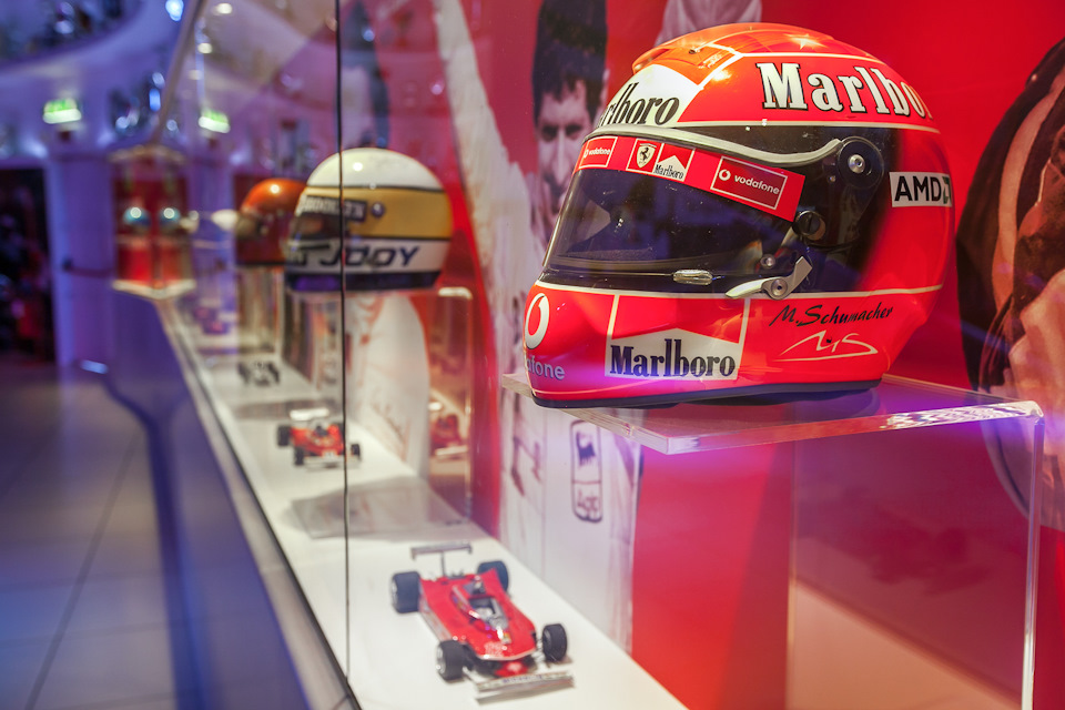 В музее собраны шлемы всех Чемпионов мира Команды Феррари Формулы 1.