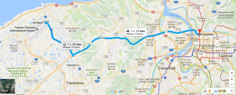 От аэропорта Тайвань-Таоюань до Тайбэя