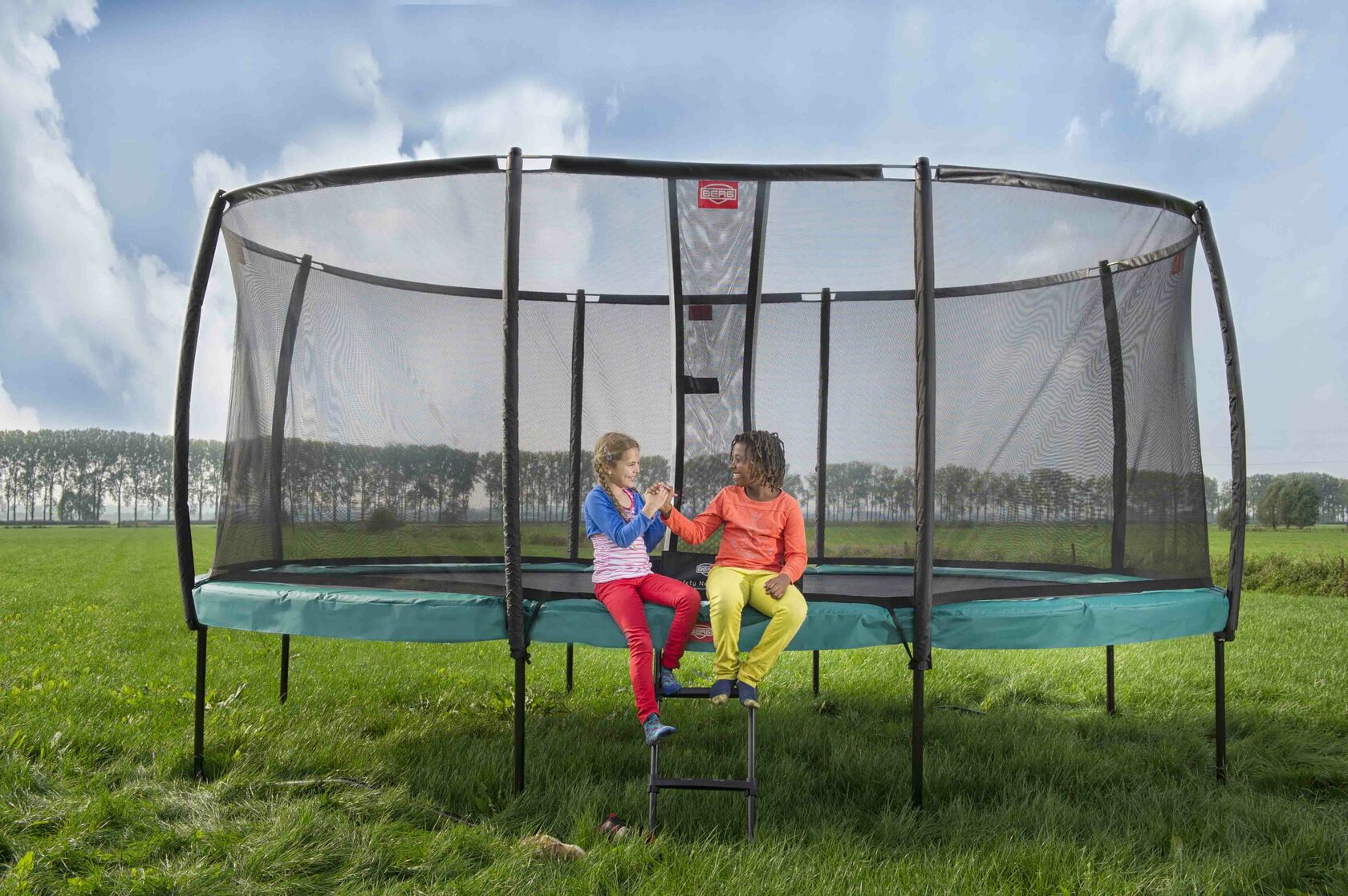 Проверьте прочность лестницы для батута, чтобы ребенок мог залезть и слезть, не упав.