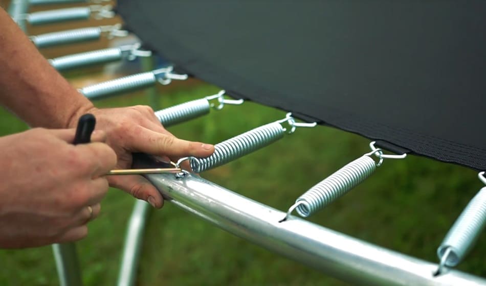 - убедитесь, что все части батута целы: сетка безопасности, которая предотвращает прыгунов от выпадения из батута, должна быть на месте и без дыр, а открытые части батута (пружины) должны быть закрыты специальными мягкими накладками (чтобы в пружину не попала нога и чтобы при прыжке случайно не удариться об нее).