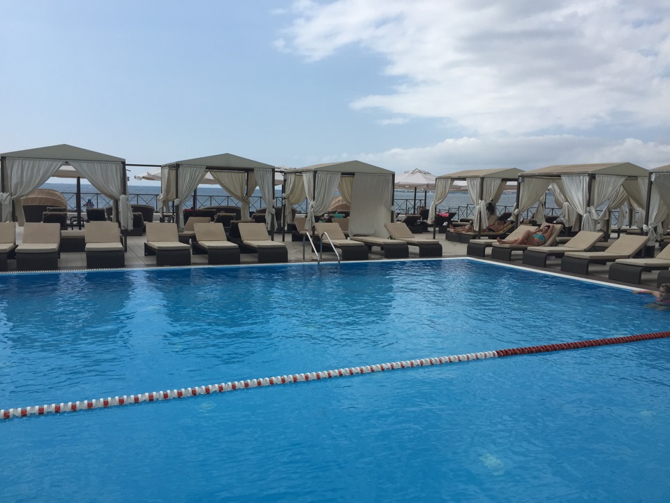 — бассейн холодный всё время. Не знаю, как это возможно при температуре воздуха +34 и моря +28.
