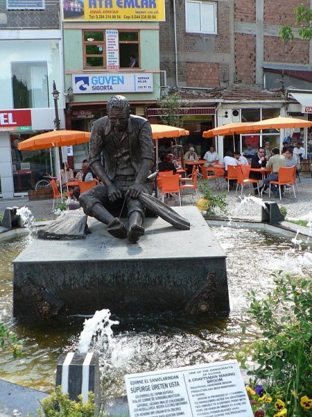 Прямо в искусственной реке стоит памятник турку, вяжущему веник