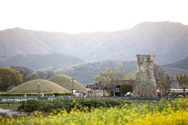 Погребальный комплекс состоит из 23 курганов – гробниц королей, королев и знати государства Силла. Самые известные курганы – это Хваннамтэчхон и Мичхуваннын, формой напоминающие горб верблюда, а также древняя гробница Чхонмачхон – единственная открытая для публики.