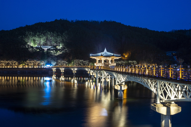 Мост Вольёнгё - самый длинный деревянный пешеходный мост в Корее, его длина – около 387 метров. Горы, среди которых течет река Нактонган, и издалека напоминающая забор Андонская плотина создает удивительную атмосферу.