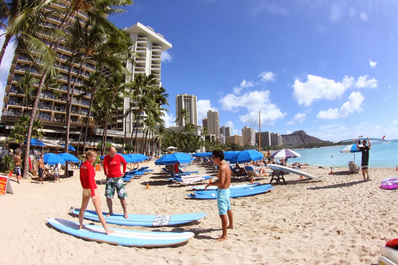 Пройдясь по окрестностям мы выдвинулись к морю, где опять-таки нас ожидала куча туристических развлечений: скутеры, серфинг, сноркелинг, дайвинг, каякинг, парасэил - все это доступно и безопасно на Вайкики, правда настоящие серферы ездят на Северную часть острова (Норз Шор), там волны побольше, но мы, остерегаясь акул, решили не рисковать и поплескаться на Вайкики.