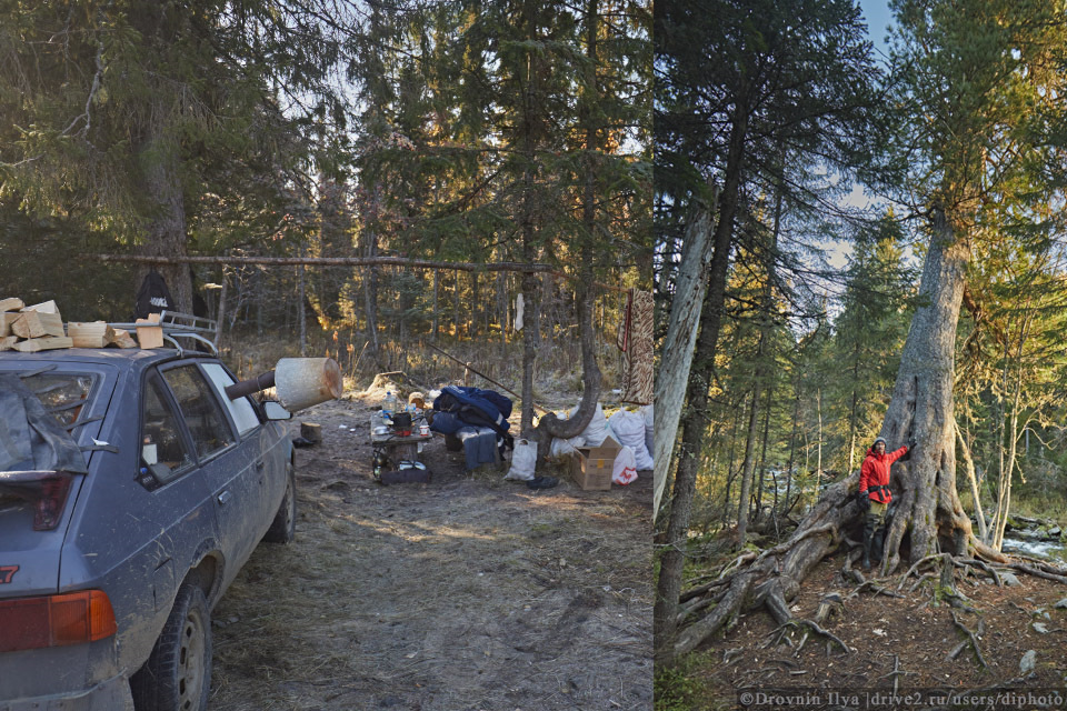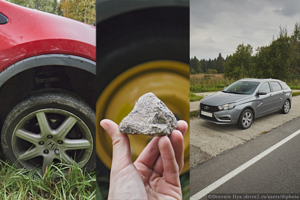 02.Колесо рвануло от наезда на маленький камешек с острыми гранями. Да, низкопрофильная резина не терпит плохих дорог. С легкой руки махнули Honda Civic на Lada Vesta. Она была с колесами повыше профилем и клиренсом, что хорошо для путешествия. Когда встретили еще одного участника путешествия — фотографа дикой природы @ golubev_da, то оказалось, что места совсем мало для нас троих с вещами. Одна фототехника съедает уйму места, а еще палатки, спальники, снаряга и т.д.