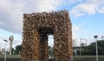 Недалеко от привокзальной площади есть знаменитая инсталляция из бревен в виде буквы "П". Это и начальная буква в названии города, и гостеприимные ворота в город.