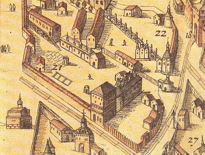 План Кремля XVII века. В центре рисунка – старый Царе-Борисов двор, сейчас на этом месте скверик перед дворцом Съездов.