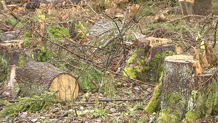 Таких делянок в Рузском районе десятки. По подсчетам местных жителей здесь вырублены сотни гектаров земли. Схема простая: здоровые деревья вывозятся и продаются, весь сухостой остается на месте, а позже его просто сравняют с землей при помощи бульдозеров.