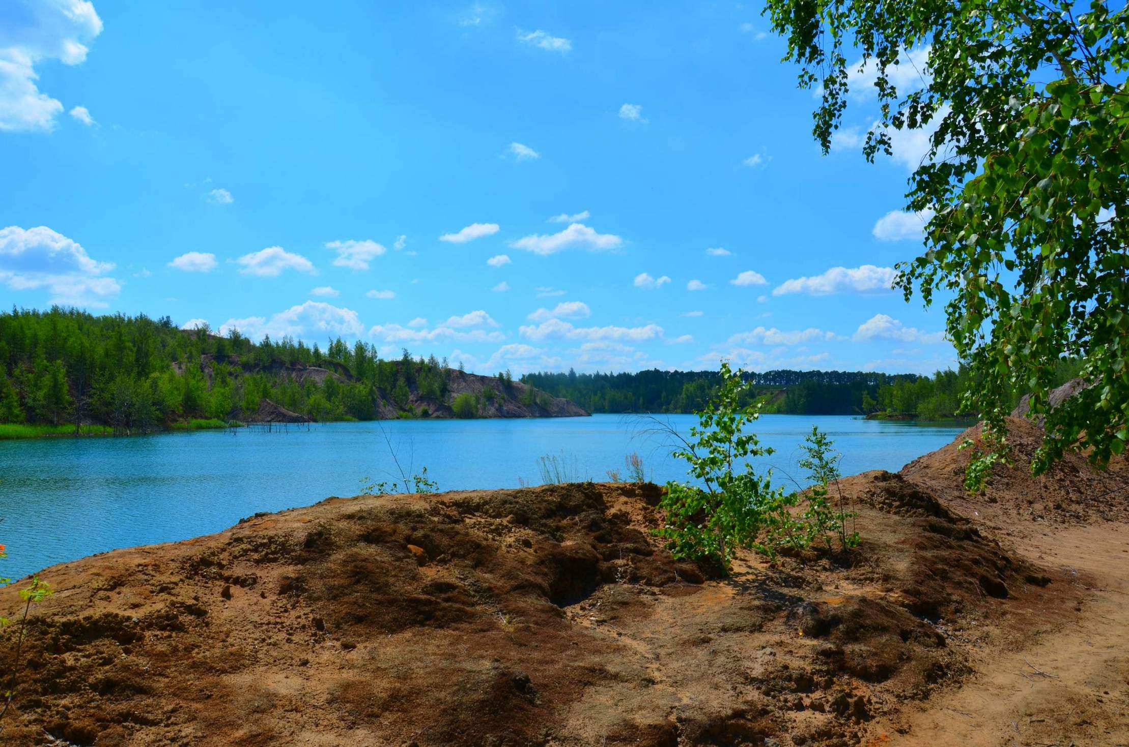 Судя по многочисленным фотографиям в сети Интернет, там находятся прекрасные озера с нереально голубой водой, а рядом остатки карьеров – горы песка, больше напоминающие поверхность Марса, чем родной земли.