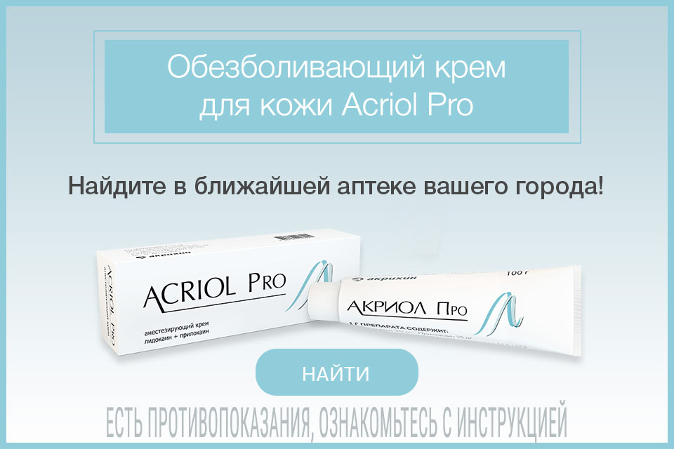 Чтобы снизить неприятные ощущения во время процедуры, можно использовать крем для обезболивания кожи перед уколом Акриол Про. Этот препарат был разработан в компании Акрихин.
