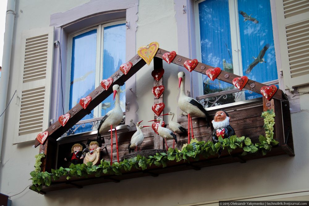 27. Центральной темой в оформлении фасадов является аист - символ Эльзаса.
