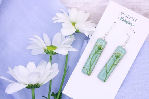 Прекрасные аллисум, гейхера, бутон розы, василёк и другие цветы бережно собираются и сушатся вручную. Далее они заливаются смолой, и вот перед вами изящная капелька красоты. Нежные и элегантные украшения станут незаменимым дополнением вашего образа.