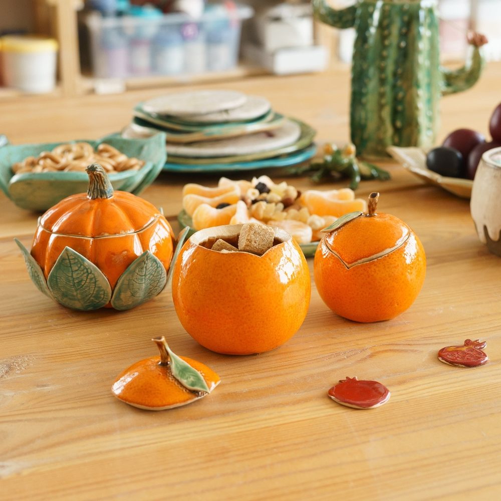 Невероятно талантливые мастера создали целую коллекцию предметов радости. На нашем маркете вы сможете приобрести тарелочку с оттисками растений, полюбившиеся очень многим шкатулки в виде гранатов, кактусов, тыкв, а также другие уникальные предметы. Приходите, любуйтесь и не упускайте возможность стать владельцем керамического чуда.