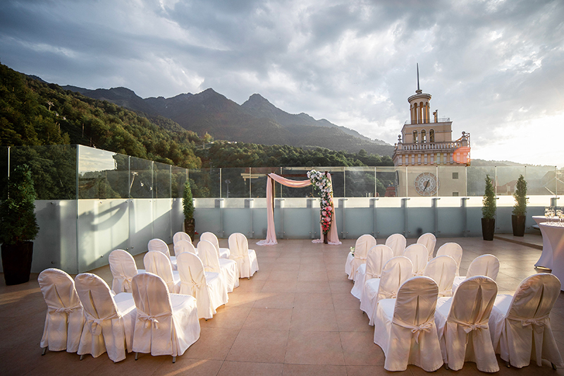 Свадьба в горах? Это особенно прекрасно! На курорте Роза Хутор для главного торжества есть все: романтичные рестораны, горные отели и природные декорации. Но самое главное - это впечатляющие выездные площадки. Смотровая на высоте 1100 метров подойдет для свадебной церемонии в кругу семьи или с большим количеством гостей. Любители камерных торжеств оценят по достоинству летнюю площадку на вершине Роза Пик, на высоте 2320 метров, с невероятными видами. А также всесезонная площадка на крыше пятизвездочного отеля Radisson с видом на горы и символ курорта — Ратушу. На крыше есть джакузи, бар и музыкальное сопровождение. Помимо выездной регистрации на Роза Хутор можно: провести банкет в одном из ресторанов с гастрономической и авторской кухней на набережной реки или на горном плато на высоте 1100 метров, забронировать романтичные номера с видами на горы для молодоженов и гостей и отснять свадебный альбом в окружении гор.