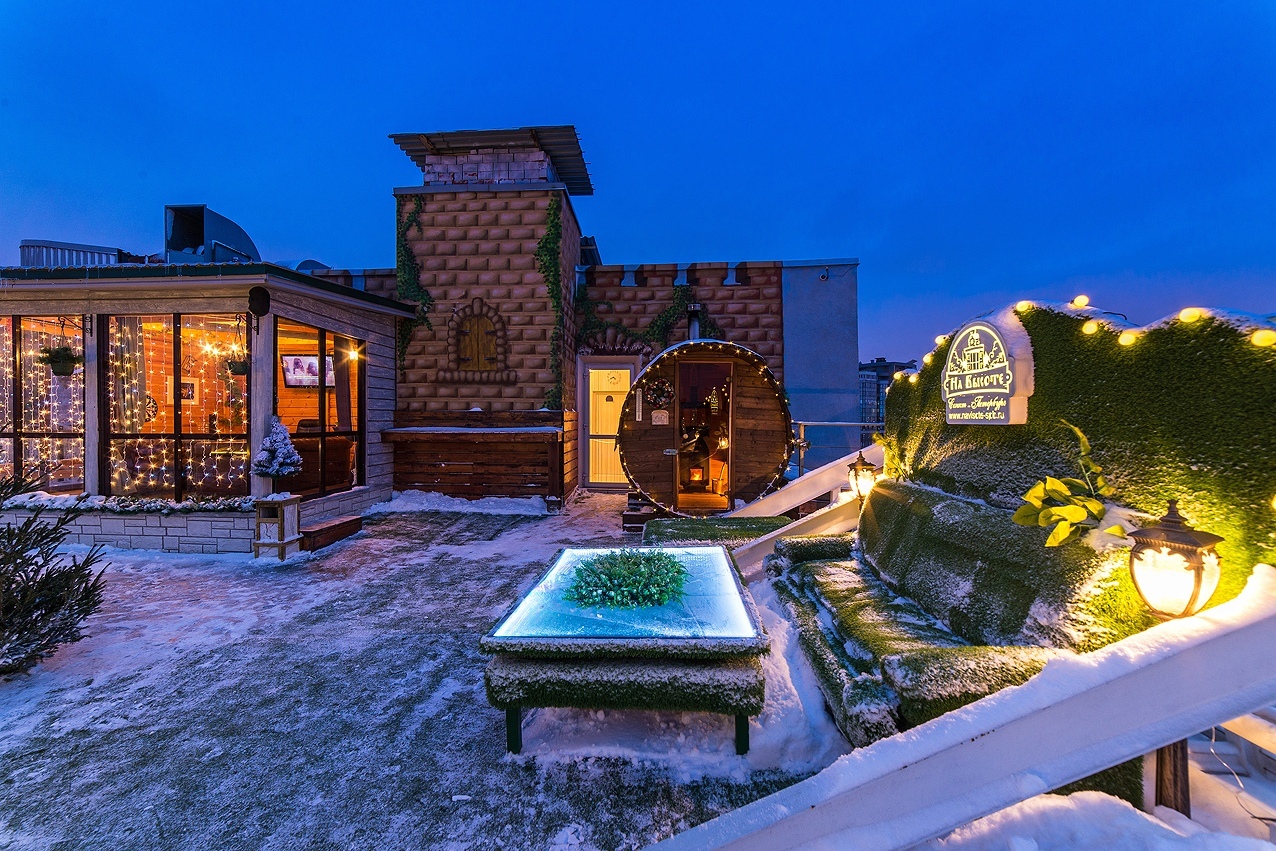 - Две русские бани: одна на дровах с панорамным видом на город, а вторая с Гималайской солью, подсветкой, на нефритовых камнях с веником