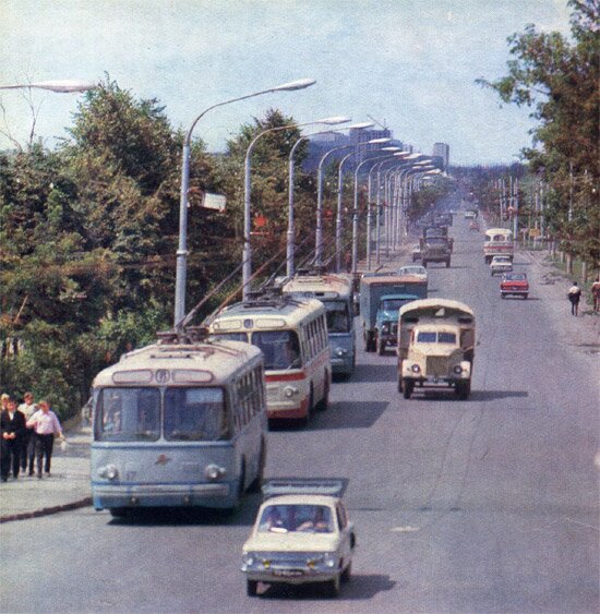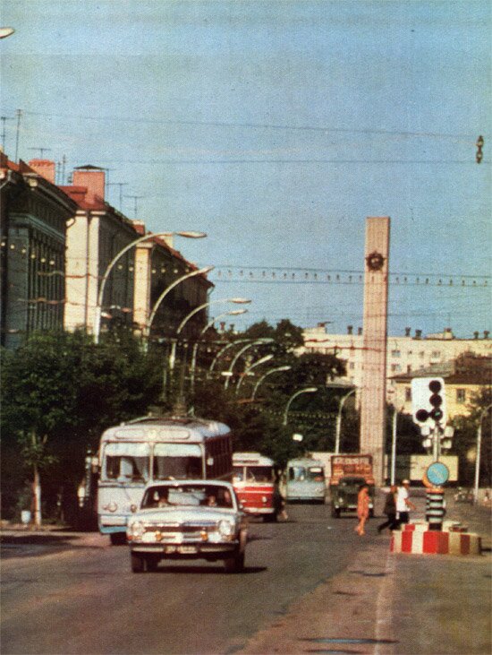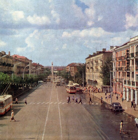 да вы номера троллейбусов посмотрите..восьмёрка, первый.. дальше не видно.. такое тока на московском встречается) а перспективы этих фотографиях действительно обманывают, посмотрите например как близко стоит стелла на победе, где фотография от перекрестка с дзержинского.. такая значит была оптика