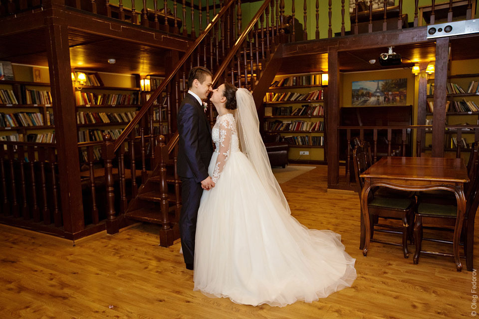 Договариваться о свадебной фотосъемке необходимо заранее, придется внести предоплату. Посетителей нет, все залы будут в вашем распоряжении. Есть сцена с театральным освещением. Свадебная фотосессия занимает здесь от 45 минут до часа.