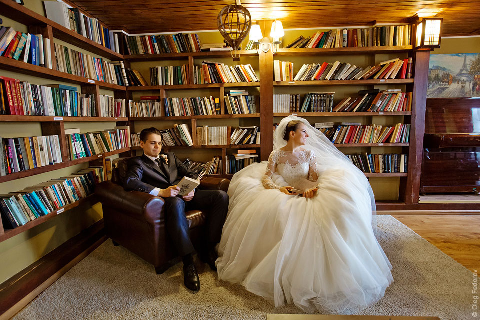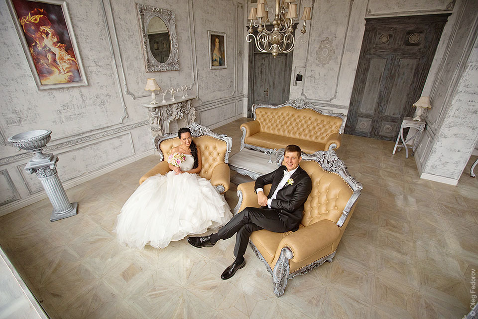 Обычно, когда молодожены бронируют фотостудию для свадебной съемки, я советую выбирать два разных зала — один светлый, другой темный. Так фотографии будут разнообразнее.