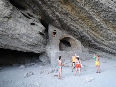 Отсюда недалеко до знаменитого детского лагеря "Артек". Можно дойти пешком до ближайшей проходной, договориться с охраной, чтобы вас пропустили на пляж. Обычно, между заездами детей, пляжи пустые. Если вы хорошо плаваете, можете попасть в красивейшие гроты. Говорят, их любил Пушкин. И называются они Пушкинские гроты. Но добраться к ним можно только по морю со стороны Артека.