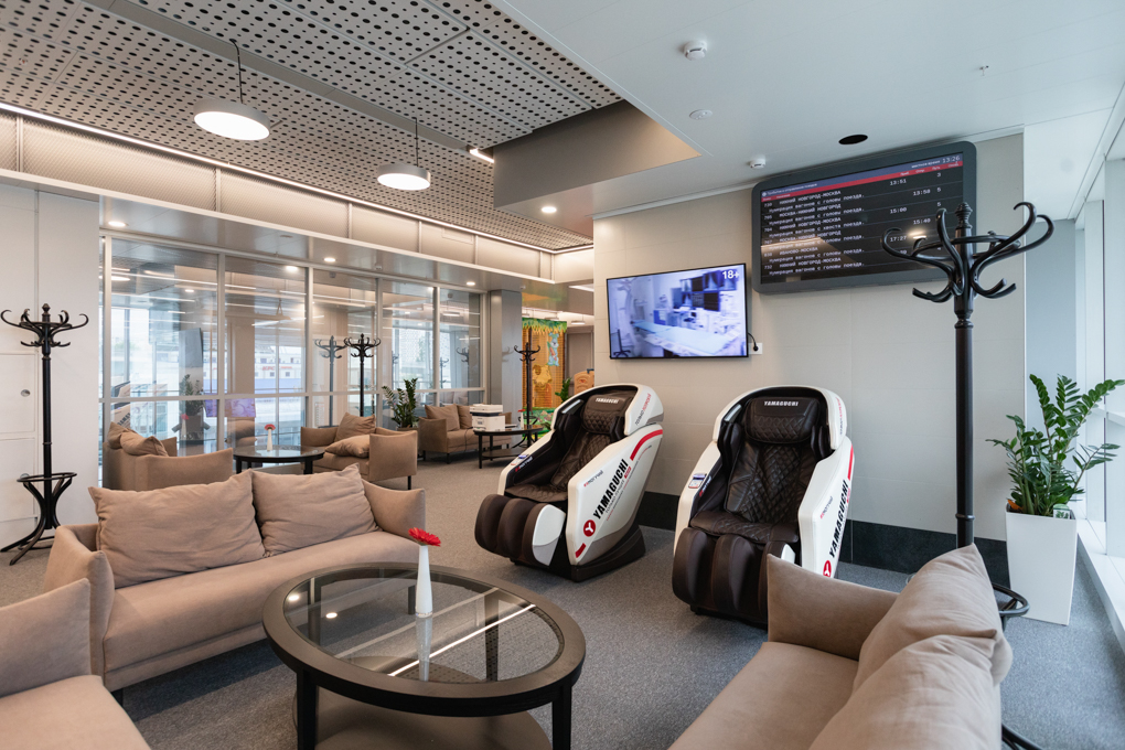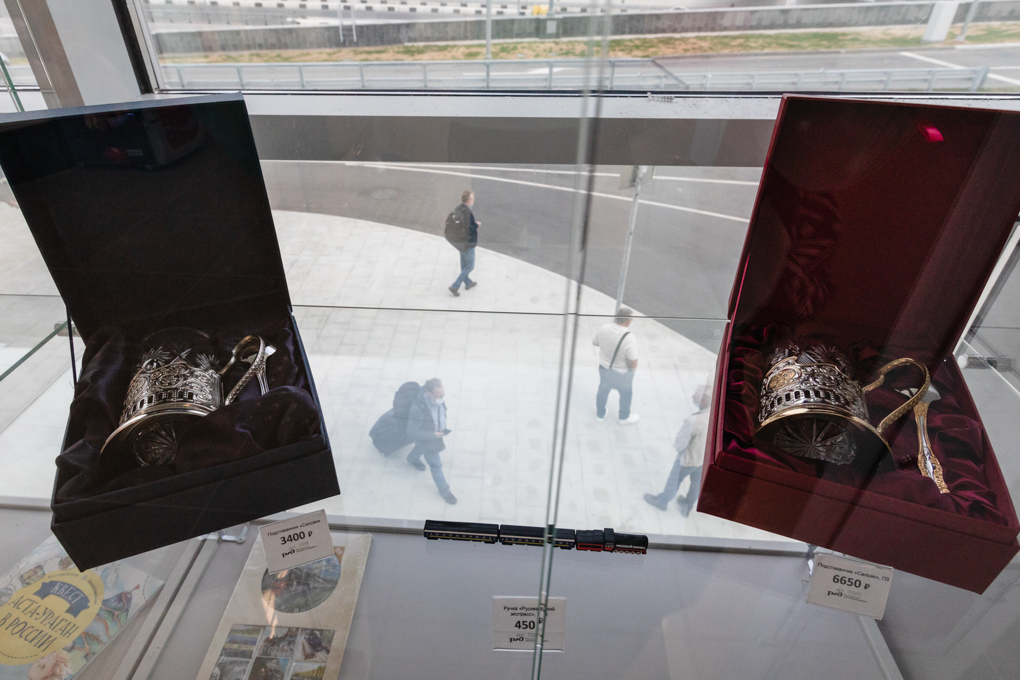 Отдохнуть перед поездом обычные пассажиры могут в зале ожидания на 200 мест, а пассажиры, готовые заплатить полторы тысячи рублей, — в VIP-зале. За эти деньги там можно провести три часа с неограниченным доступом к напиткам и закускам, возможностью отсканировать и распечатать документы, мягкими креслами и большими окнами. Правда, вид их них не слишком духоподъемный — дорога, трубы и стройка. Здесь продают сувениры РЖД — легендарные подстаканники в подарочной упаковке (самый дорогой — за 6 650 рублей), магниты, значки, ручки, детские книжки. Еще один вариант развлечений в ожидании поезда — медицинская комната, в которой планируют организовать вакцинацию от COVID-19.
