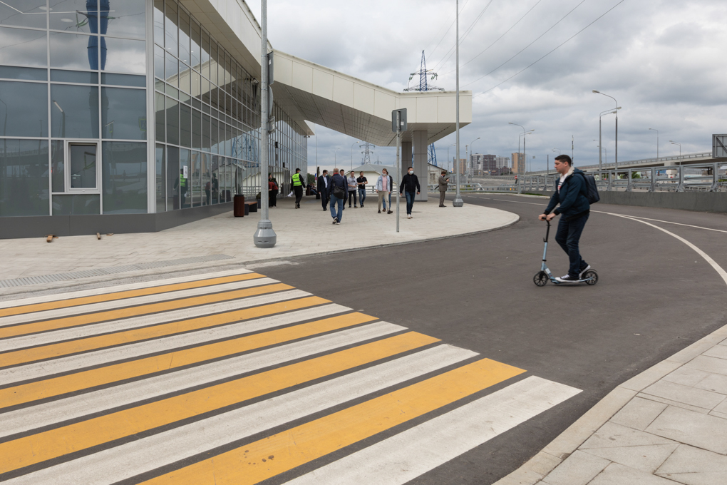 Мне очень не понравилось, как организовано движение автомобилей у выхода: две полосы, одна на въезд, вторая для посадки и высадки пассажиров, ширина полос минимальная. Многие пассажиры выходят из такси на дальней полосе, а на ближней другие такси ждут своих клиентов. Такая конфигурация подъезда к вокзалу создает постоянный затор — гудят клаксоны, люди ругаются.