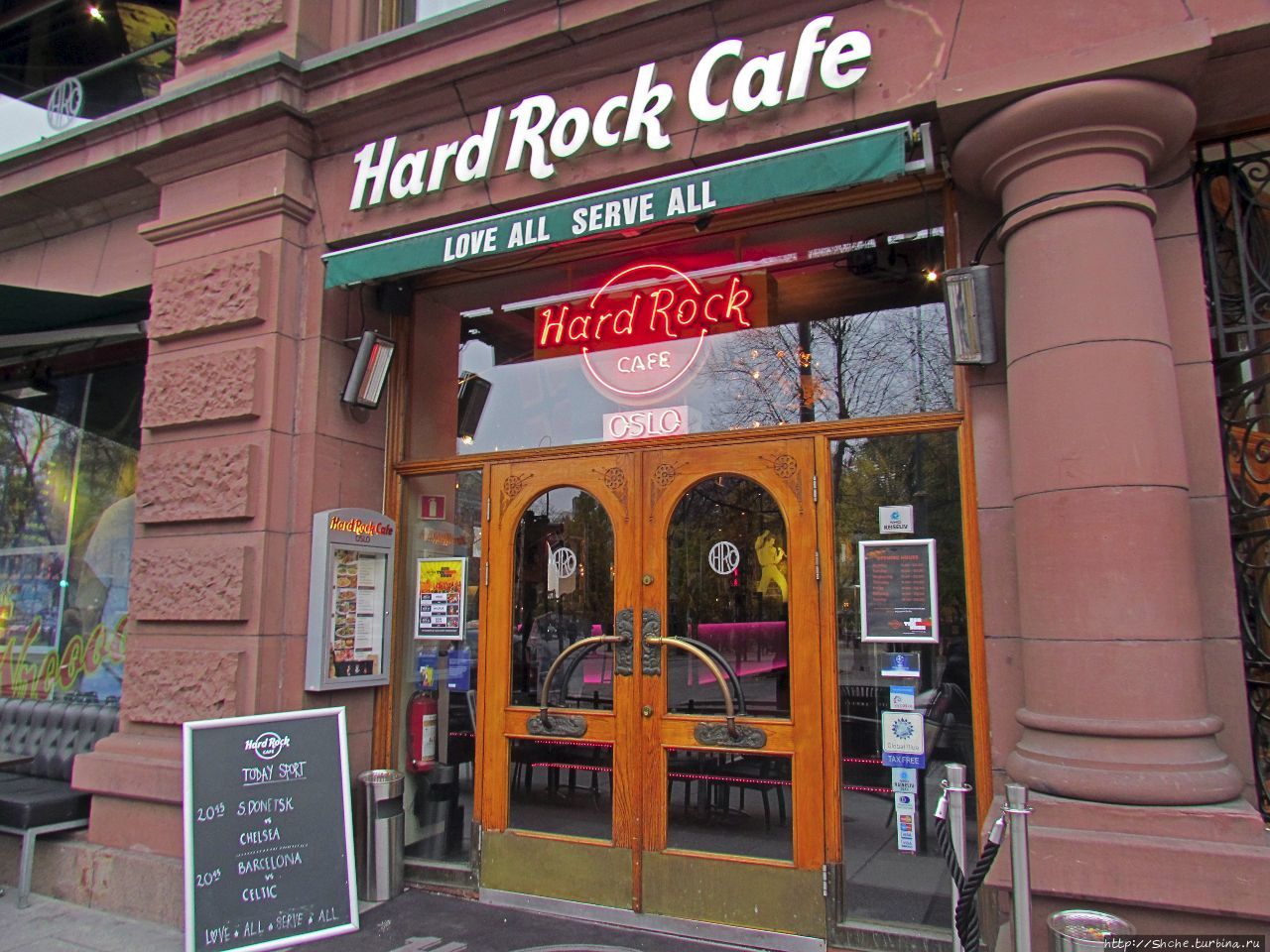 Проходим мимо культового "Хард Рок кафе". Вы удивлены? Да просто мы успели его посетить вечером накануне:))) Культовое кафе в Осло
