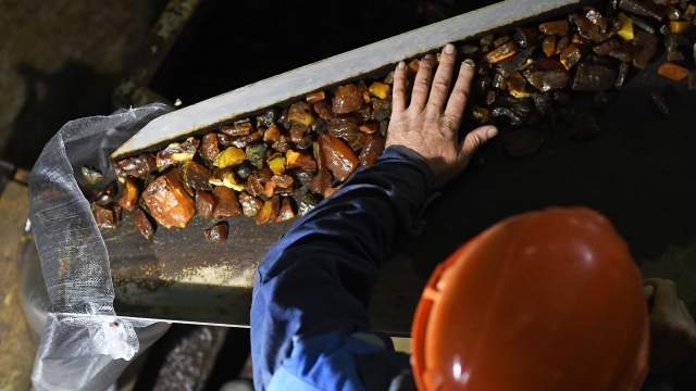 Промышленной добычей камня занимается Калининградский янтарный комбинат. Ежегодно он извлекает на поверхность около 300 т янтаря-сырца