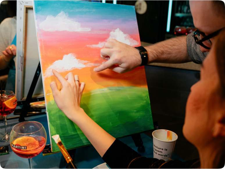 Организовать арт-вечеринку можно на день рождения, корпоратив или тимбилдинг. А можно просто записаться на любой мастер-класс по рисованию из нашего расписания и приятно провести вечер.