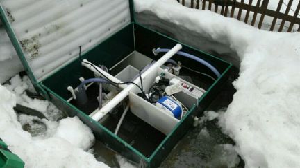Пруд частично окружен забором. Въезд перекрыт большими воротами, охраной.