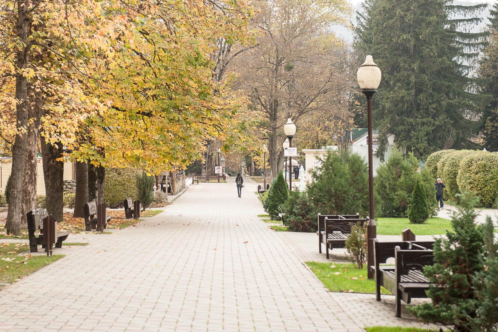 В верхней части парка более спокойно, здесь прогуливаются неторопливые туристы и отдыхающие местных санаториев. В нижней части – аллеи с фонтанами и клумбами, кафе и магазины, туристические тропы, которые ведут к главным достопримечательностям. Здесь можно заказать обзорную экскурсию или взять велосипед напрокат.