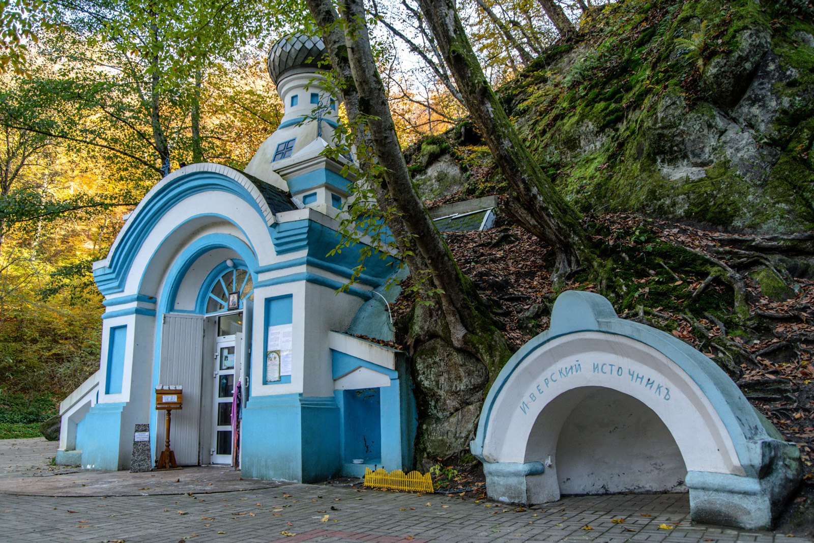 В начале XIX века на этом месте был источник, за которым закрепилось название Иверский. К роднику приходили местные жители и паломники, так как вода в нем считалась целебной. Из-за грунтовых сдвигов Иверский источник истощился, и на этом месте построили часовню и чашу-раковину.