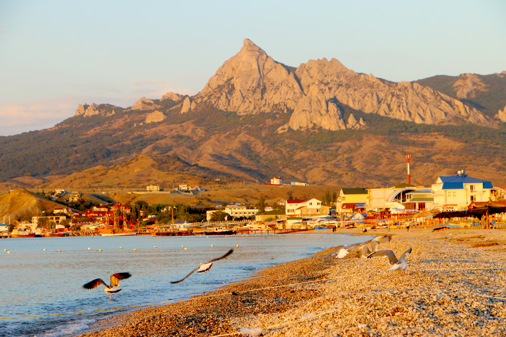 Коктебель — один из самых красивых курортов в Крыму. Пляж Коктебеля окружен горами. В Коктебеле прекрасная обновленная набережная с кафешками, галечный пляж, чистое море, величественная гора Кара-Даг и арка Золотые ворота.