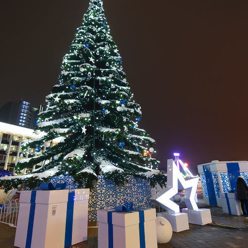 Встретить Новый год, обменяться подарками и сделать эффектные праздничные фотографии можно будет у главной городской елки. В этом году ее по традиции установят на центральной площади города – Театральной. Пушистая красавица как всегда будет нарядно украшена, а вокруг поставят объемные инсталляции: огромный елочный шар, звезды и подарочную коробку.