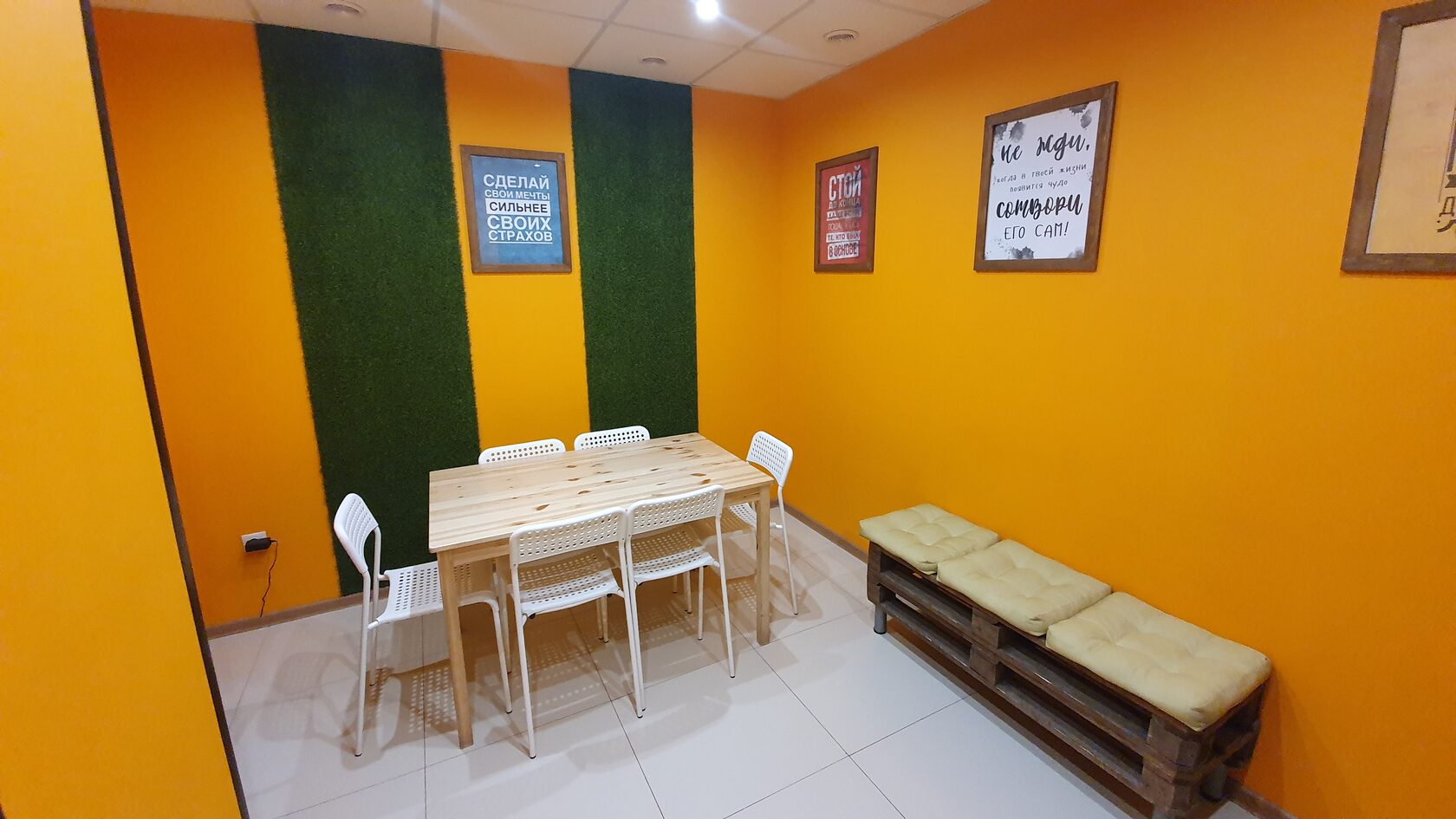 в комфортной комнате отдыха