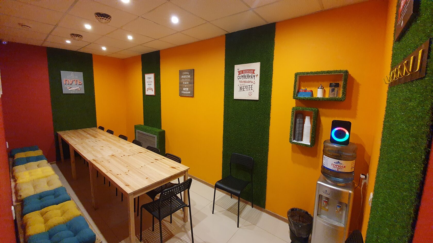 После увлекательного прохождения квестов игроки могут поделиться впечатлениями от игры в нашей комнате для чаепитий. Насладиться вкусной пиццей, поздравить именинника, задуть свечи на красивом торте и выпить любимой газировки.